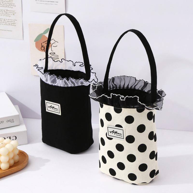 Корейский стиль кружева холст сумка милый сладкий темперамент сумки-ведра портативный пикник сумка для женщин девочек студент ланч сумка