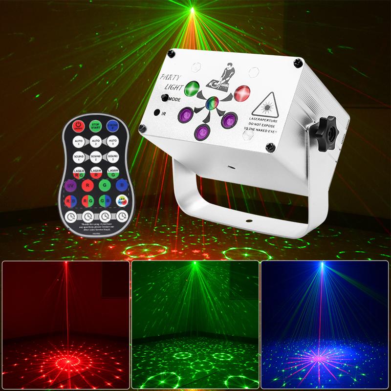 R80 Мини Лазерный Светильник Сценический KTV Party Алюминиевый Сплав Декоративный Светильник Голосовое Управление Дистанционное Управление Атмосферная Лампа - Серебряный