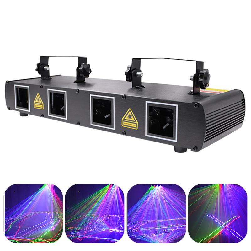 Внутренний четырехлучевой лазерный светильник из алюминия, портативный с голосовым управлением для спальни, семейной вечеринки, сцены, бара (EU Plug) — купить товар онлайн с бесплатной доставкой до всему миру!