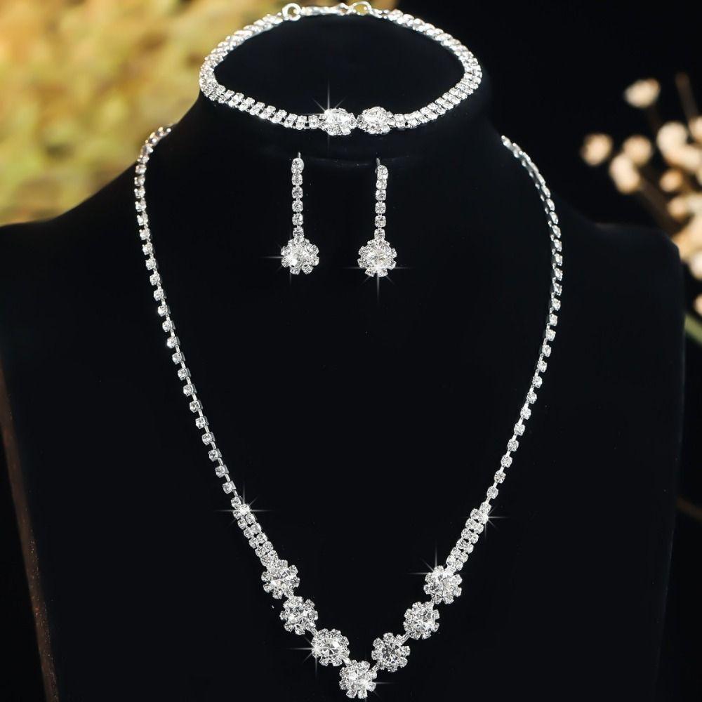 Браслет Серьги Сияющее Ожерелье Свадебная Вечеринка Стразы Комплект Ювелирных Изделий Женщины