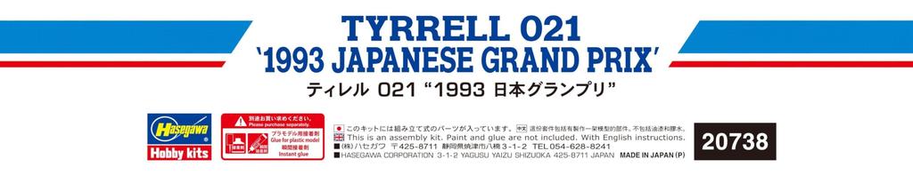 Hasegawa Tyrrell 021 1993 Гран-при Японии Пластиковая модель 20738 1/24 (Машина)