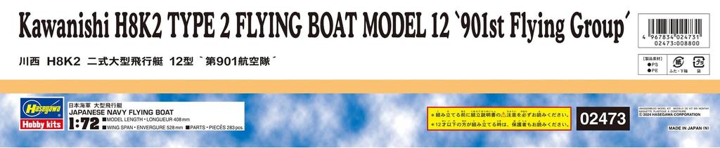 Hasegawa Япония Каваниси H8K2 Тип 2 Большая летающая лодка Модель 12 901-я авиагруппа Пластиковая модель 02473 1/72