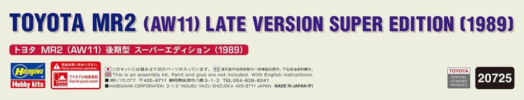 Hasegawa Toyota MR2 Late Model Super Edition 1989 Пластиковая модель 20725 1/24 (Осенняя осень 11) (Машина)