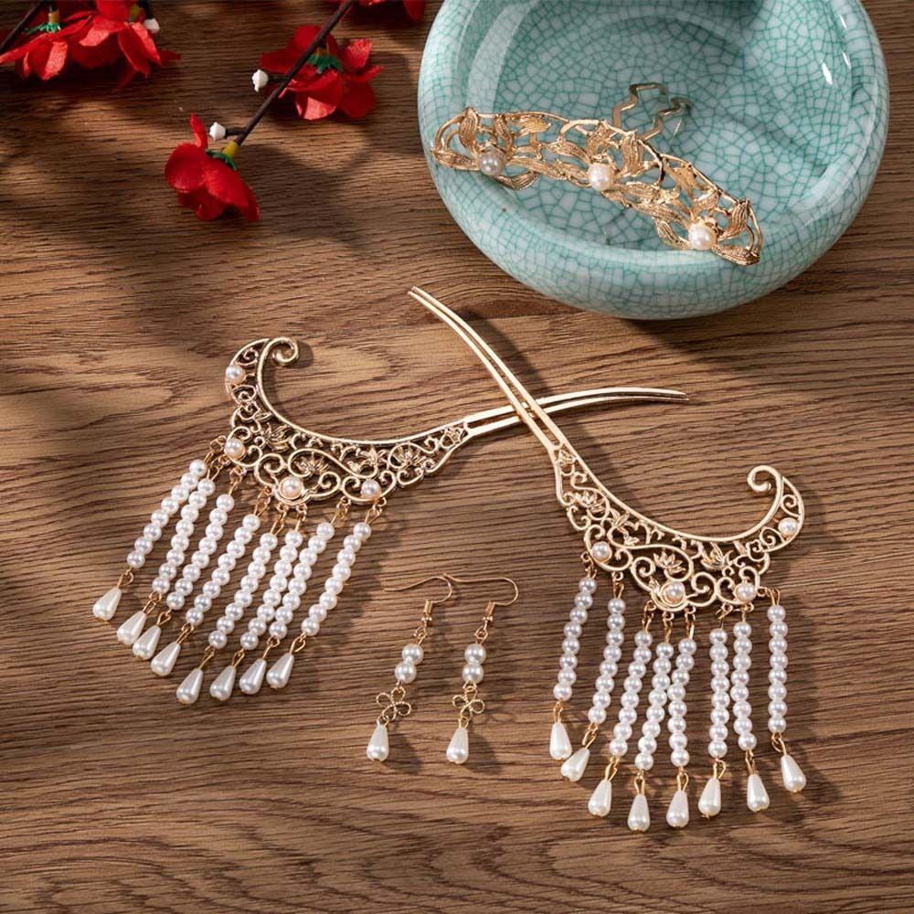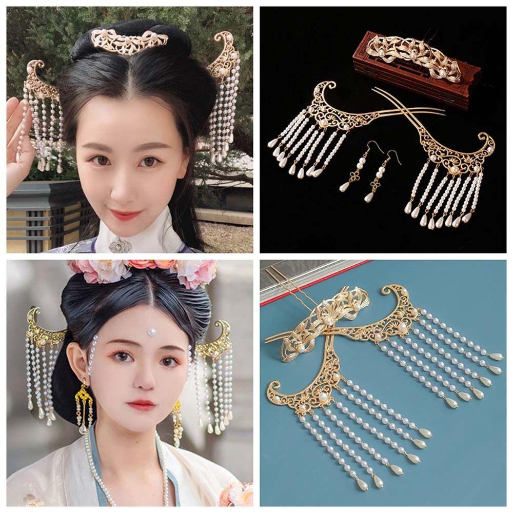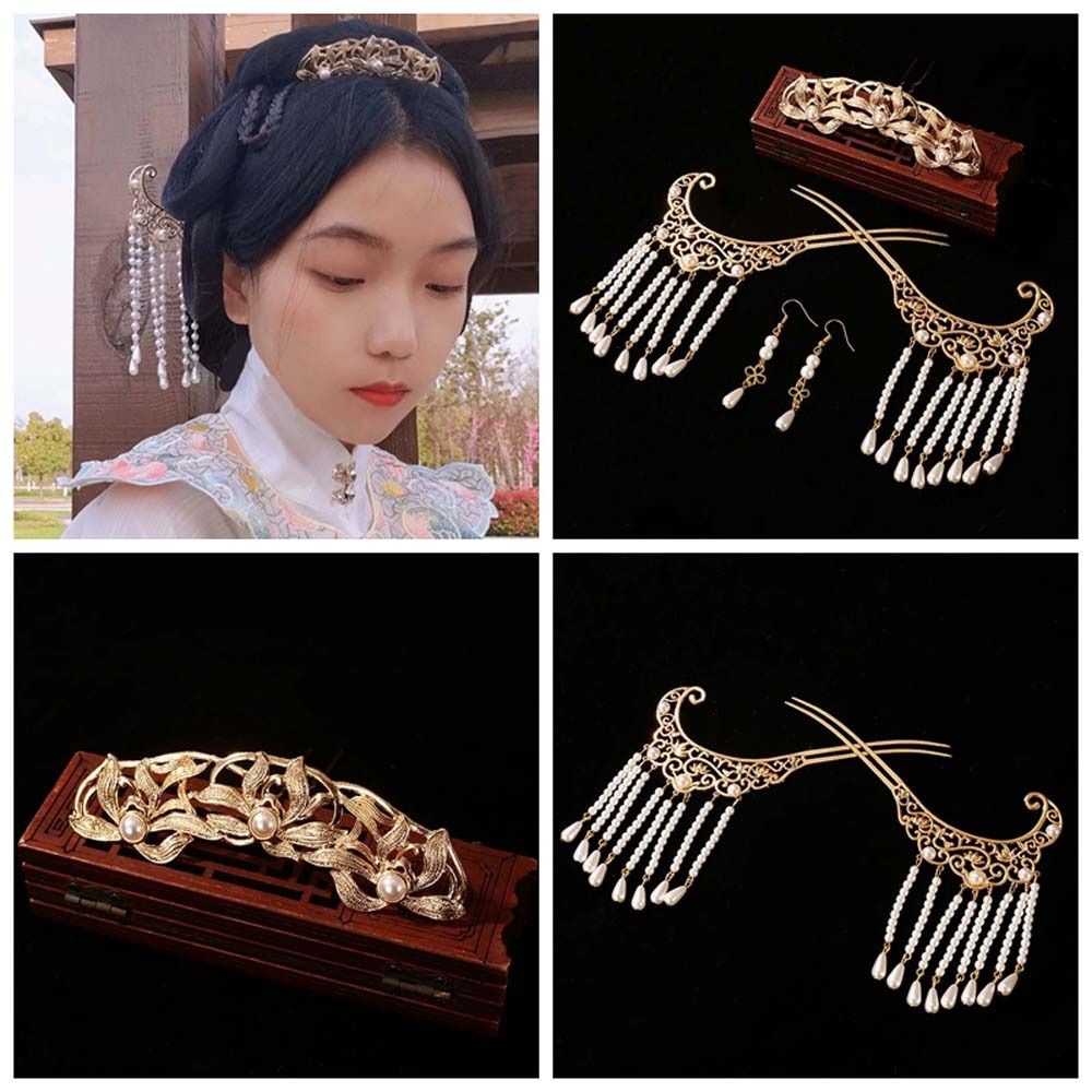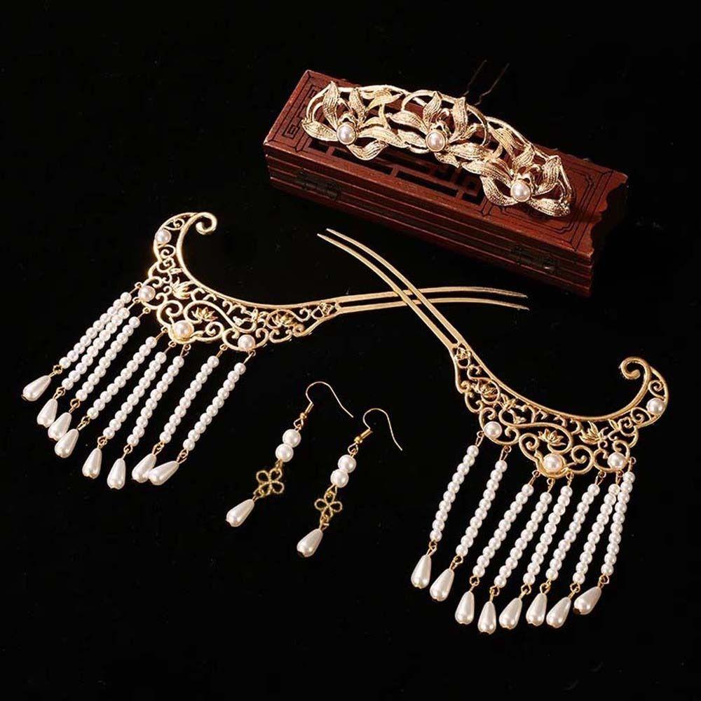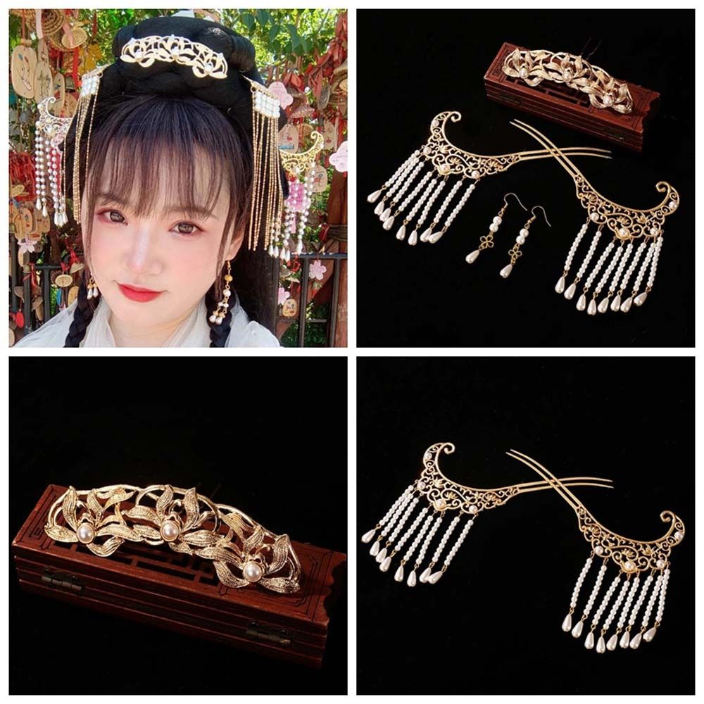 Цветок лотоса ханьфу палочки для волос набор жемчужные заколки для волос в китайском стиле ретро цветок кисточка шпилька для волос ежедневно