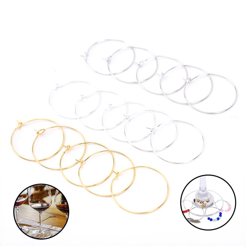 100 шт. Посеребренные/Позолоченные Кольца-Шармы для Винных Бокалов, Кольца для Серег, Свадебная Вечеринка