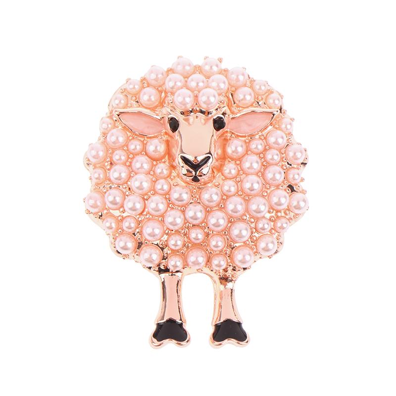 Брошь в виде мультяшного животного, инкрустированная жемчугом, милая овечка, брошь из сплава, подарок