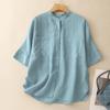 Летняя хлопковая льняная рубашка больших размеров со свободным воротником для женщин