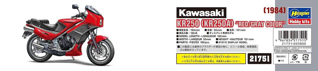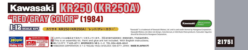 Мотоцикл серии Hasegawa Kawasaki KR250 цветной пластик модель 21751 1/12 (КР250А) Красный/Серый