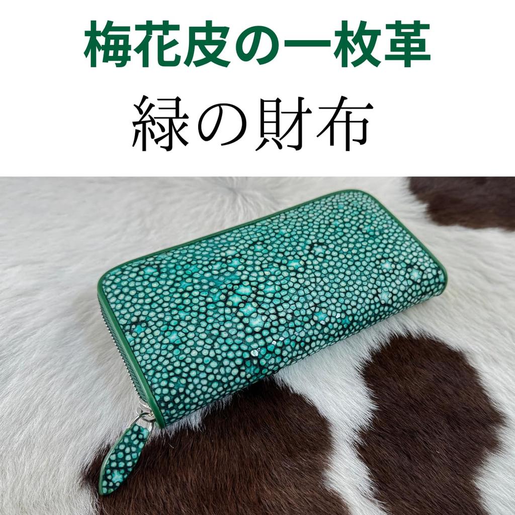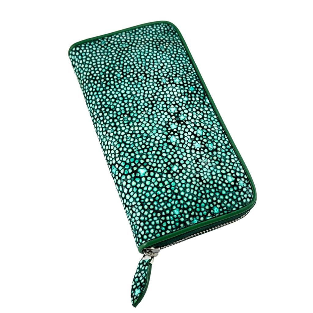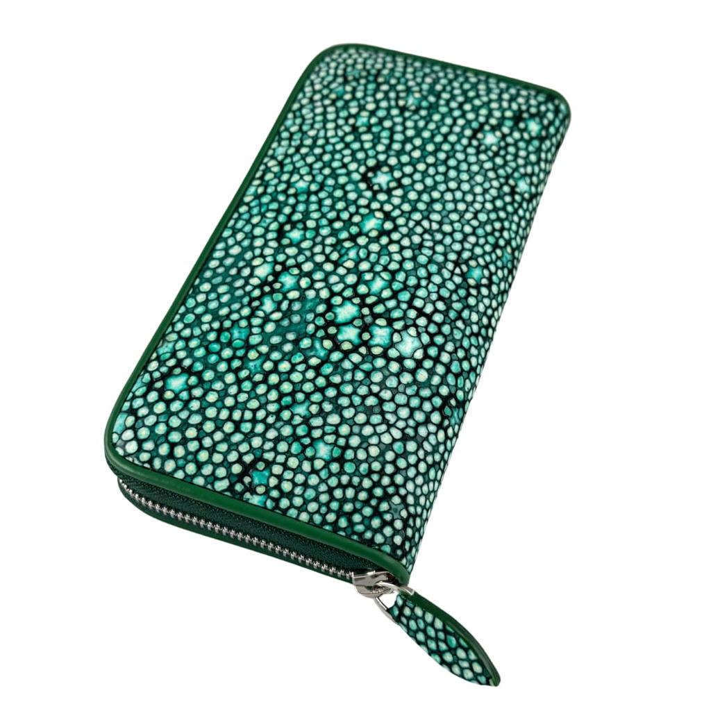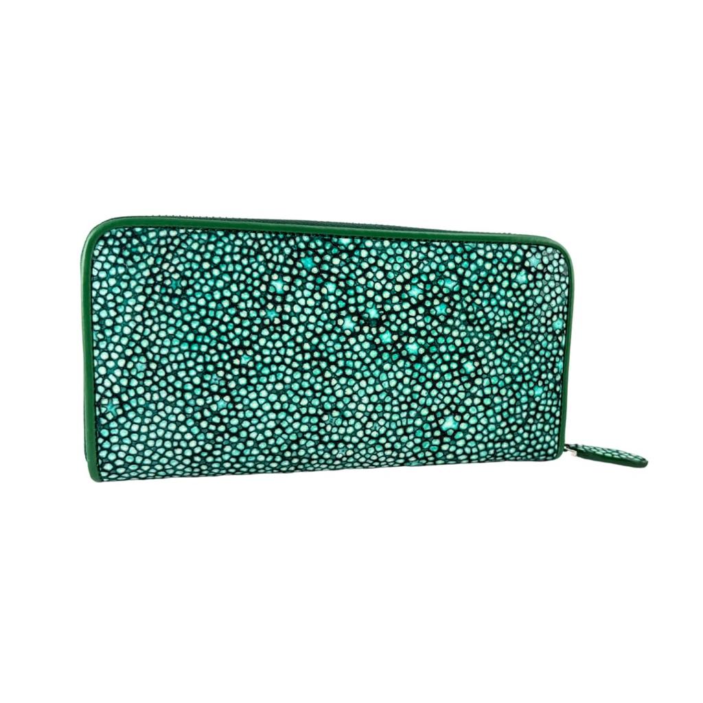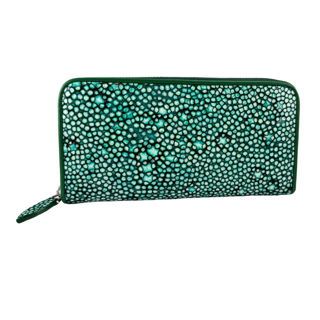 Длинный кошелек Star Stingray из натуральной кожи ската с круглой молнией зеленого цвета [Capitana]