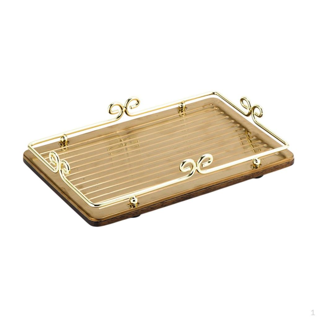 Поднос для сервировки еды, органайзер для столешницы, деревянная доска, туалетный столик, фруктовая тарелка с металлической рамкой для