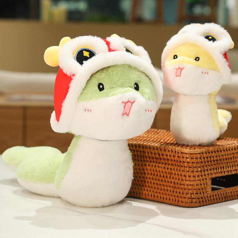 Новогодний мультфильм Lucky Snake животные плюшевые фигурки куклы мягкие подушки игрушки одежда льва забавный рождественский новогодний подарок