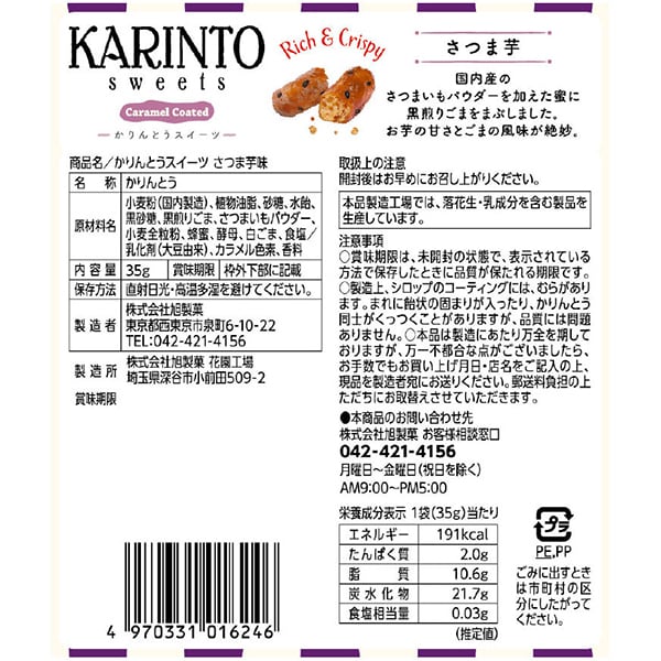 Asahi Конфеты KARINTOU со вкусом батата 35 г Вагаси