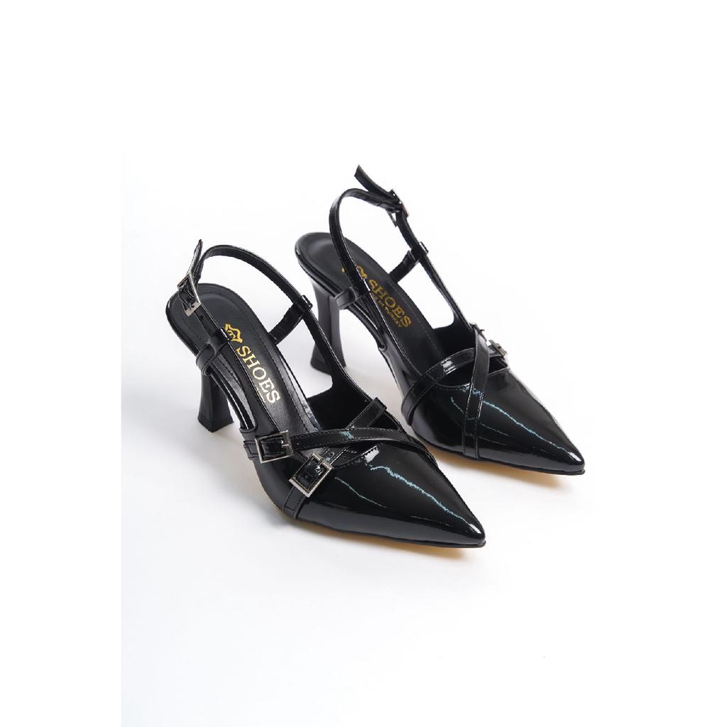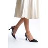 Черные женские туфли на каблуках с острым носом и поясом, детализированные, классические, каблук 7 см Zr01