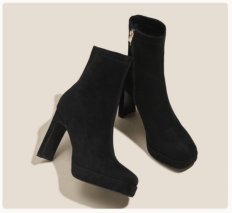 Эти элегантные туфли на платформе и высоком каблуке созданы специально для женщин, предлагая шикарный и стильный образ, идеально подходящий для осеннего и зимнего сезонов.. Верх из замши обеспечивает роскошную текстуру и ощущение, а резиновая подошва обеспечивает долговечность и сопротивление скольжению.. Квадратный носок добавляет современный штрих, а толстый каблук обеспечивает устойчивость и комфорт, что делает их идеальными как для повседневных выходов, так и для особых случаев.. Водонепроницаемость гарантирует, что ваши ноги останутся сухими в любую погоду.