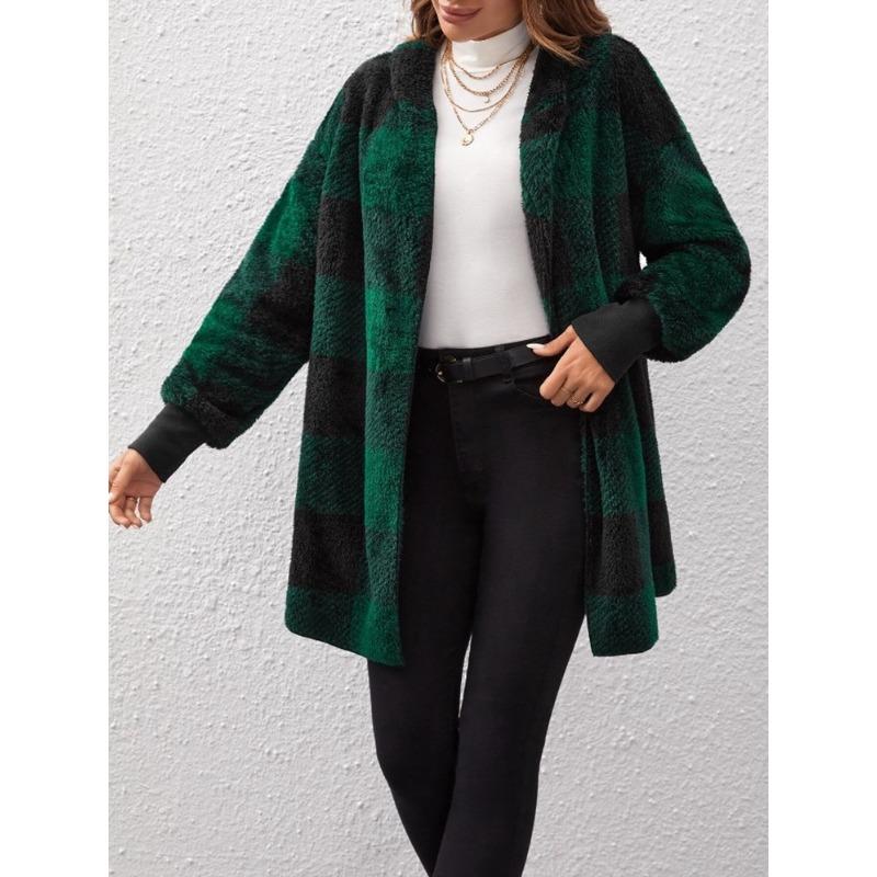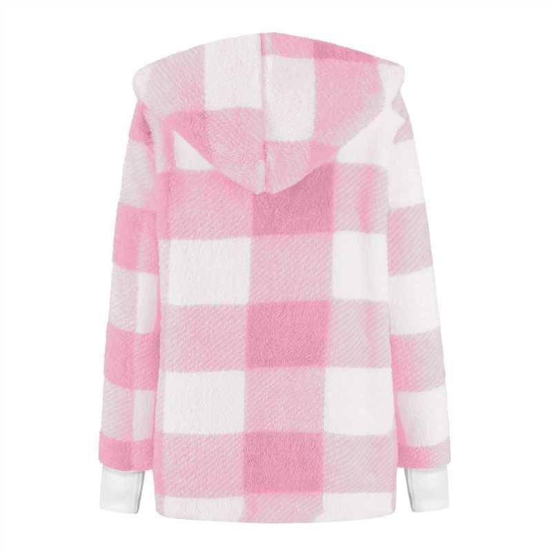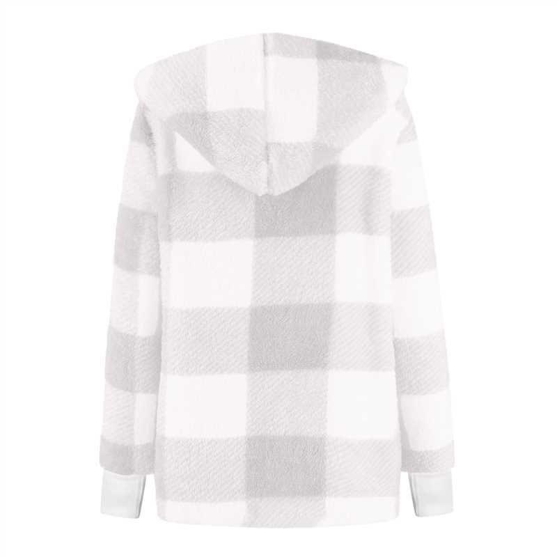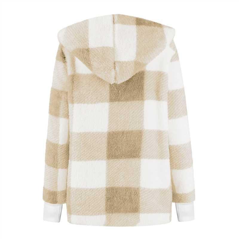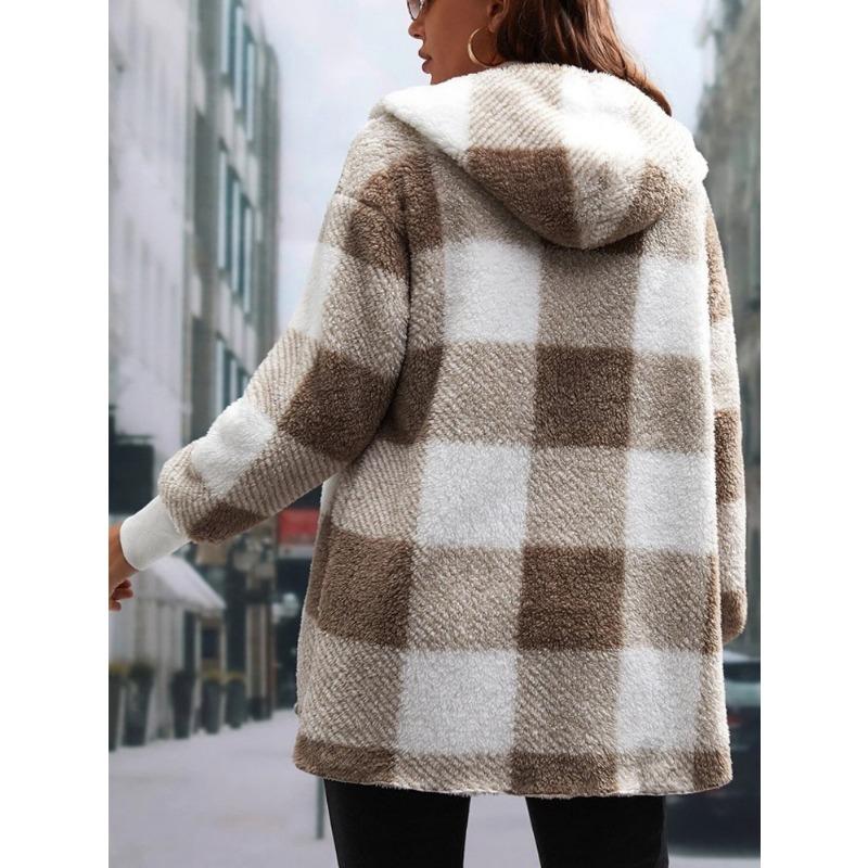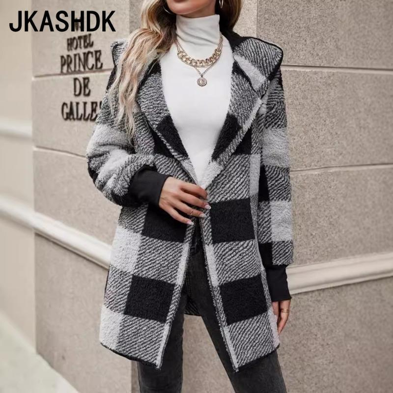 JKASHDK Женская мода повседневная клетчатая печать осень-зима с длинным рукавом с капюшоном куртки и пальто