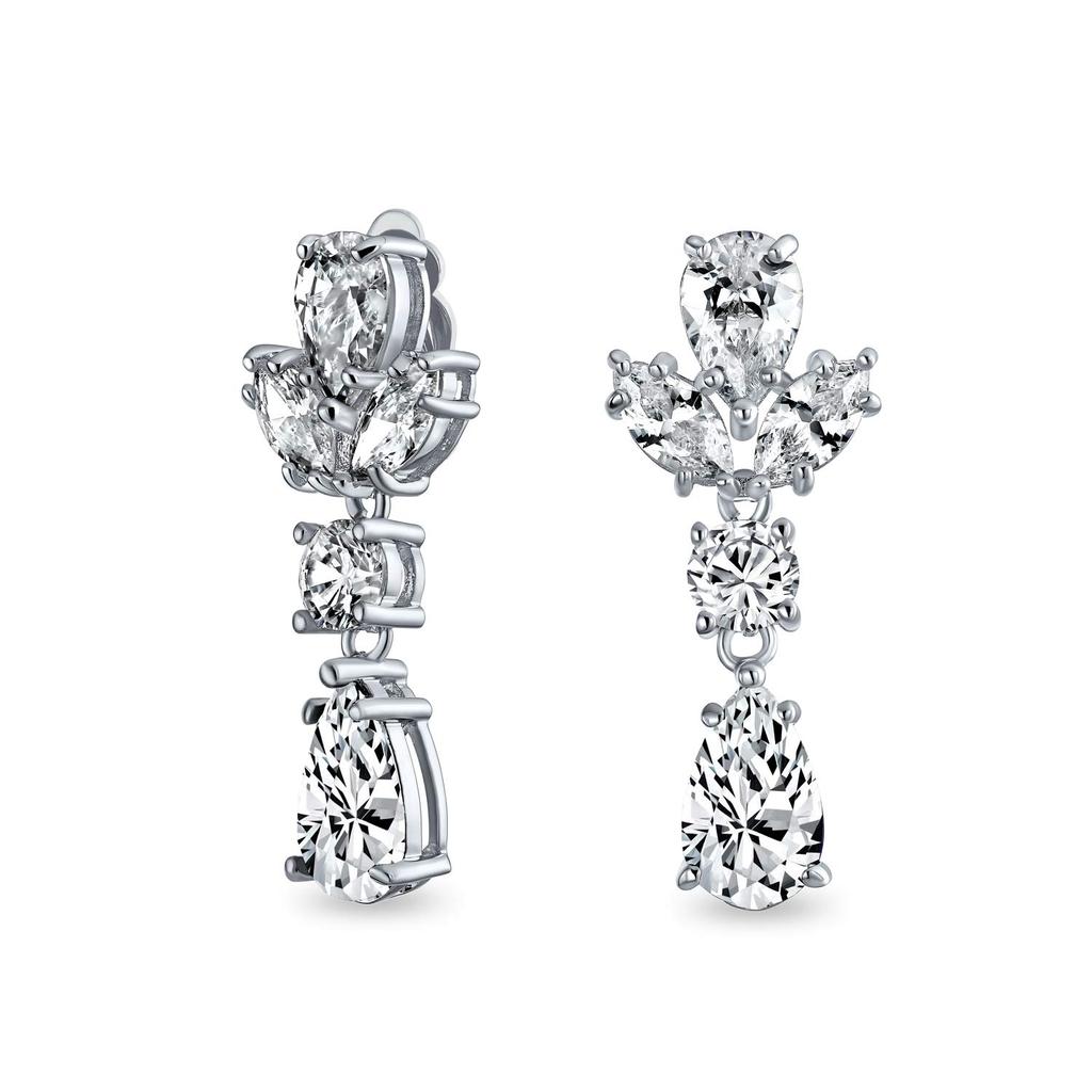 Винтажный стиль ар-деко прозрачный кубический цирконий AAA CZ заявление висячие формальные листья каплевидной формы люстра клипсы серьги свадебный выпускной конкурс серебряный