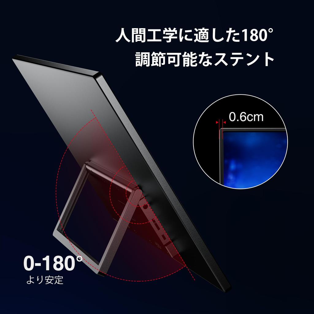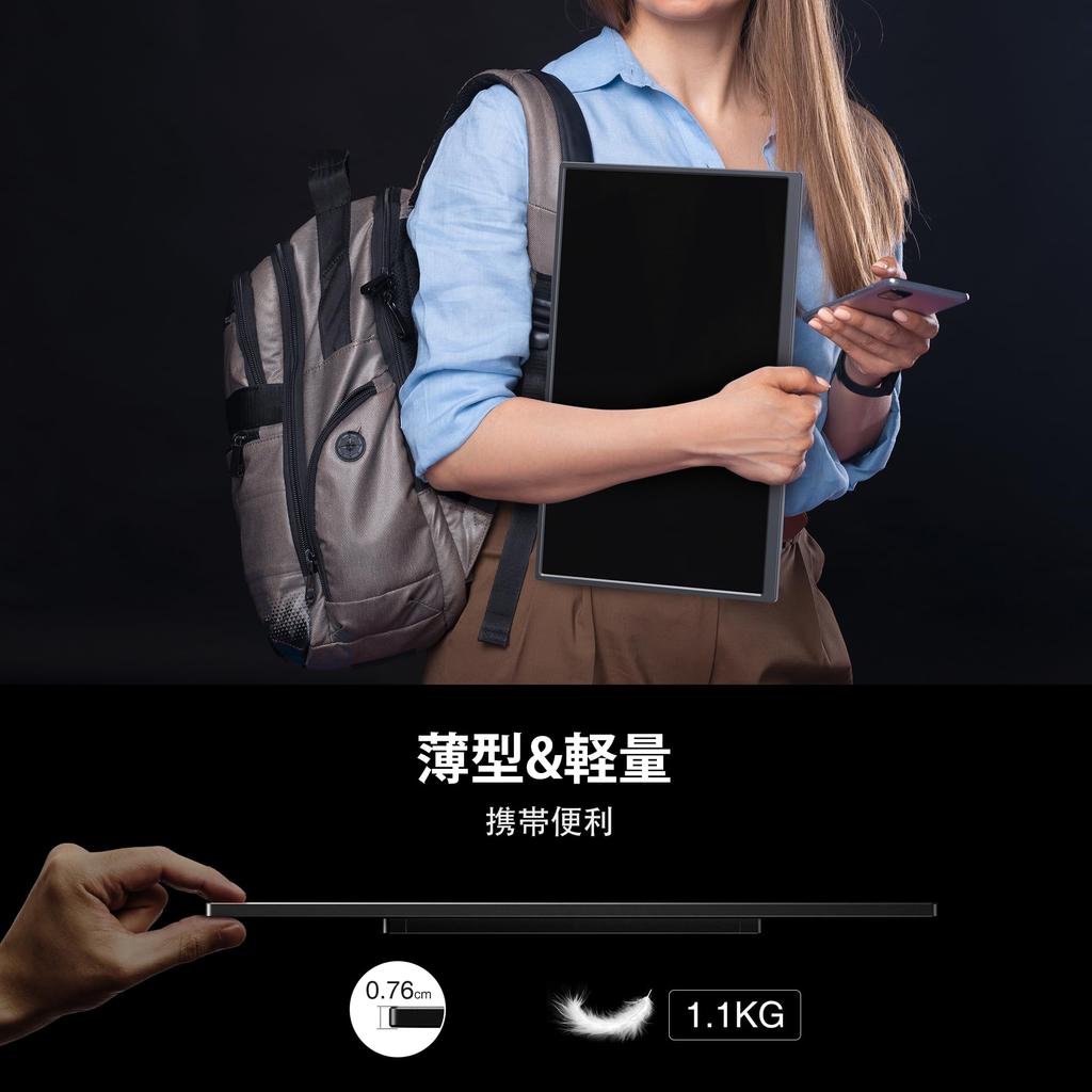 [18.5-inch large screen/178° viewing angle] To provide you with a better movie experience, we have developed a 18.5-inch mobile monitor that is larger in size, lighter, and has narrower bezels. Compared to conventional 15.6-inch monitors, the screen display area has been expanded by more than 10%. Not only will you have a bigger movie experience, but you will also be more efficient at work. It has a slim body size with bezels on the display and on the left and right sides of 4 mm, but it has a smart design that maximizes the display area. Equipped with a wide 178° panel, you can enjoy an accurately reproduced visual feast without blur or distortion.