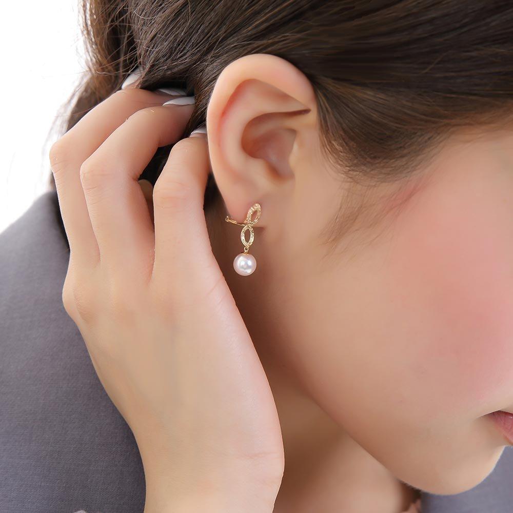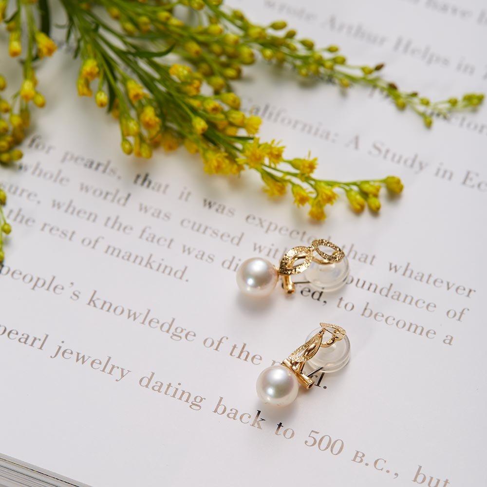 Серьги с золотым листовым жемчугом K18 Серьги с жемчугом женские [в подарочной упаковке]