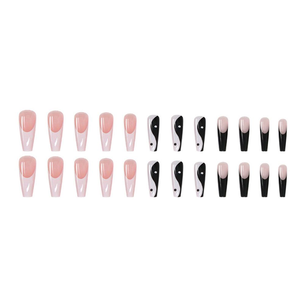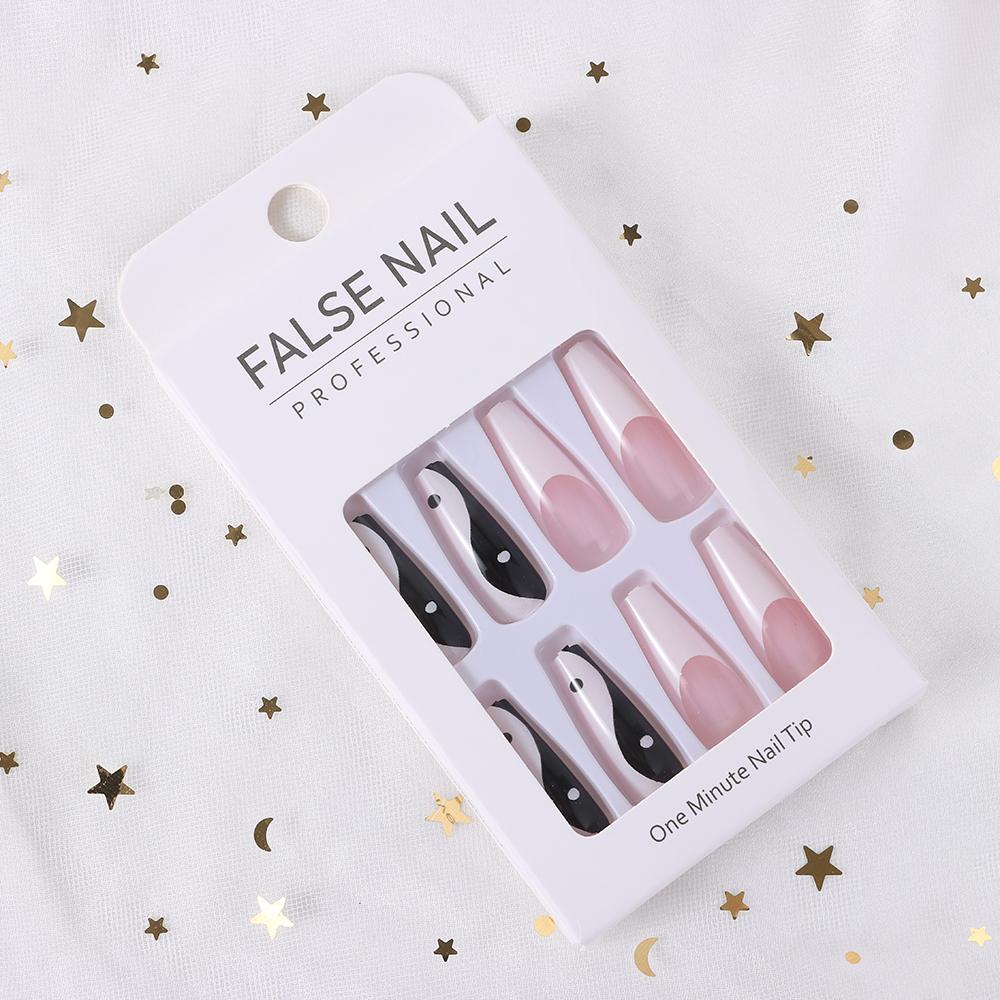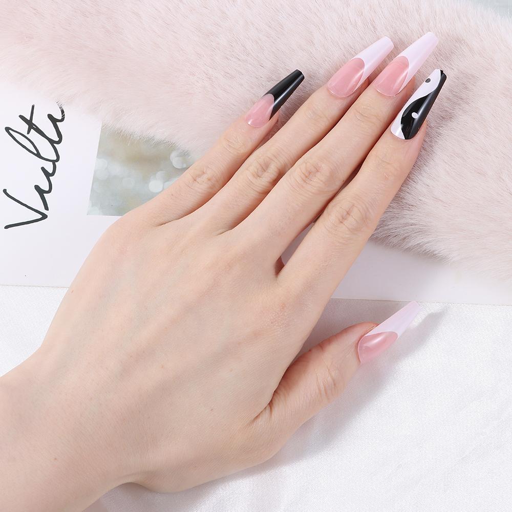 Накладные ногти Ballerina с полным покрытием и дизайном Taichi, длинные, гробовые, белые и черные, смешанные цвета