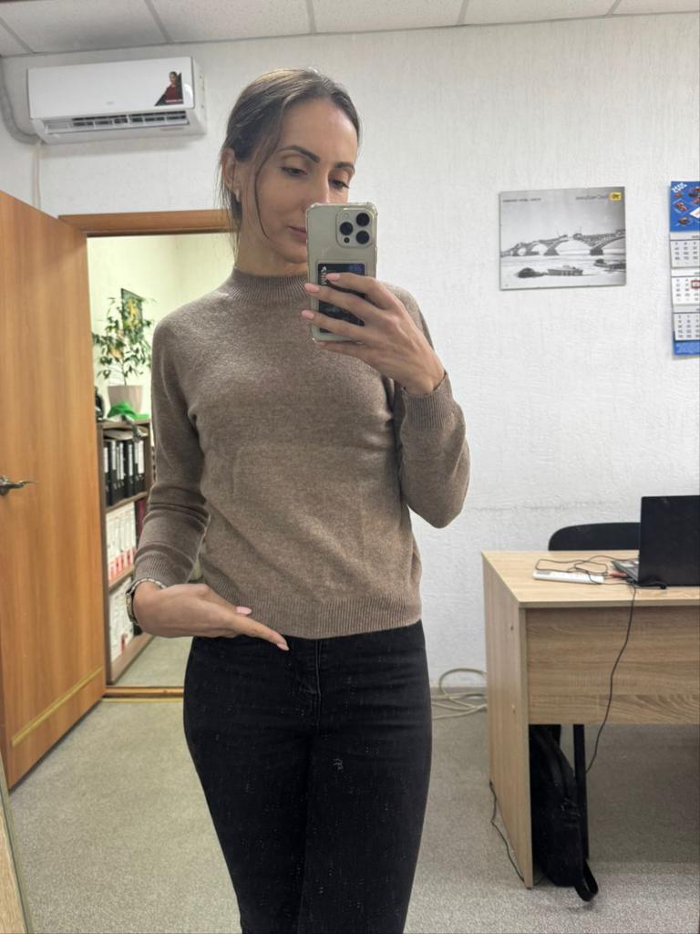 Тонкий, шелковистый свитерок цвета верблюд 🐫 У продавца на выбор два цвета: светло-серый и верблюжий. Верблюд оказался довольно симпатичным цветом хаки с сероватым отливом. Свитер тактильно очень приятный, к телу тоже. Мягенький, невесомый... одним словом, очень хороший свитерок! Фасон простой ничего лишнего. Ворот круглый, застёгивается на несколько пуговок в цвет трикотажа. Заказывала 2XL на ОГ88, ОТ65, ОБ92, рост 172.