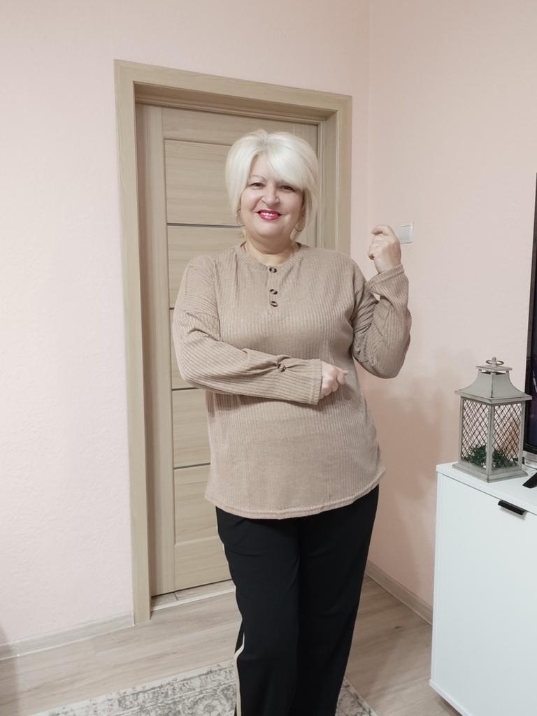 Классная кофточка !😍 ✔️ Кофта трикотажная с круглым вырезом горловины, на трёх пуговицах,ткань в рубчик, мягкая, и очень приятная тактильно. ✔️ Материал полиэстер но такой приятный что не скажешь что не натуральный. ✔️После деликатной стирки изменений нет. ✔️ Размерный ряд от S до XXL соответствует описанию продавца, тянется отлично . ✔️На мне размер XXL подошла хорошо буду носить с удовольствием. ✔️У продавца в наличии есть два цвета на выбор. ✈️Посылка шла около десяти дней в Молдову-Кишинёв ✔️Посылка была упаковано отлично. ✔️Нитки не торчат. ✔️Нет неприятного запаха. ✔️Дизайн интересный. ✔️Качество хорошее. ✔️Размер подошёл мне впритык. Мои параметры: Рост - 1,65 см. ОГ - 110 см. ОТ - 100 см. ОБ - 115 см. Однозначно рекомендую к покупке 🥰