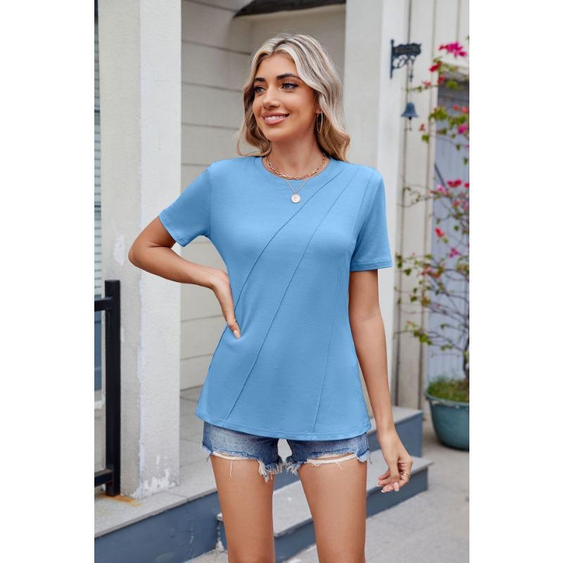 Женская весна и лето, новые однотонные полосатые свободные футболки с круглым вырезом и короткими рукавами