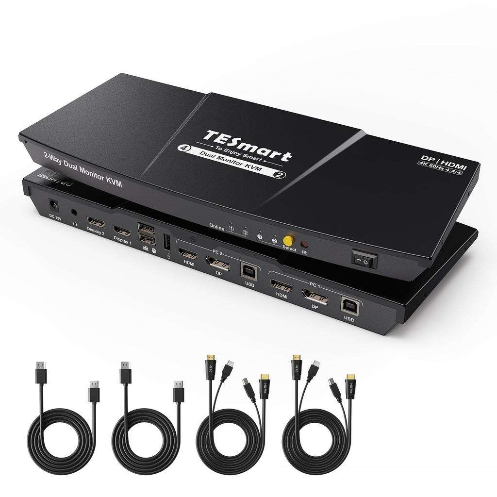[Высокое разрешение 4K60 Гц и Smart EDID] Двухдисплейный коммутатор имеет разрешение до 3840 x 2160 при 60 Гц и полный 4-дюймовый экран.:4:4 глубины цвета, а также HDR10, Dolby Vision и HDCP2.2. Подарите себе великолепные визуальные впечатления. Он также имеет функцию EDID в режиме расширения и дублирования, поэтому после переключения устройств ввода настройки окна компьютера не изменятся и нет необходимости их перенастраивать.
