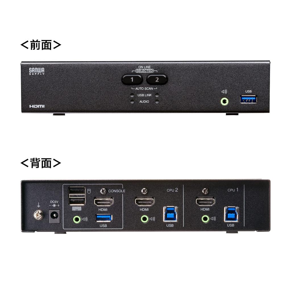 Оснащен двумя портами концентратора USB3.2 Gen1, вы можете переключать и совместно использовать различные USB-устройства, такие как картридеры и принтеры, между двумя компьютерами.. Более того, возможно независимое переключение, поэтому вы можете управлять USB-устройством на другом компьютере, работая на другом компьютере.
