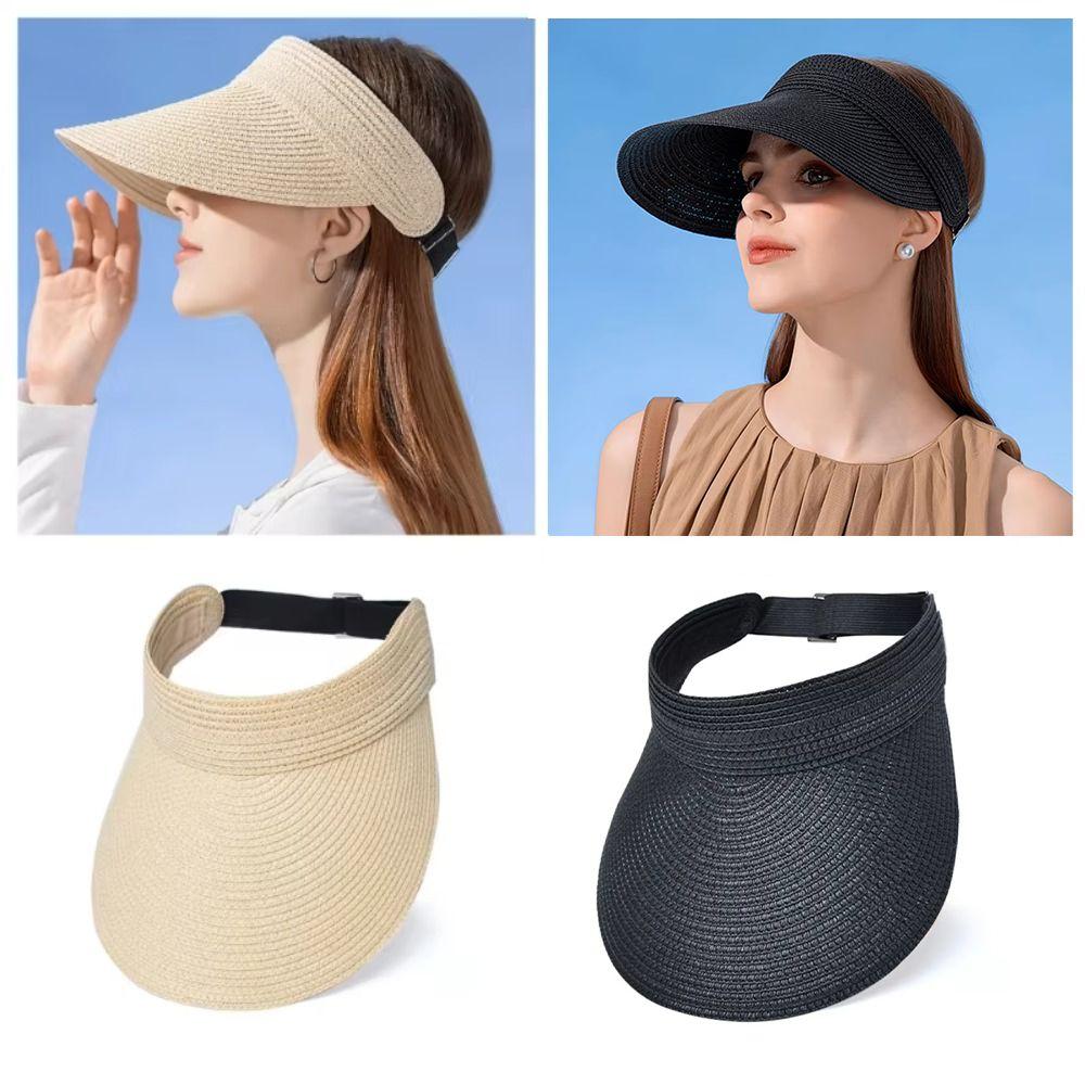 Женские кепки с пустым верхом и козырьком, с защитой от ультрафиолета, регулируемые соломенные шляпы, летние солнцезащитные козырьки унисекс