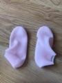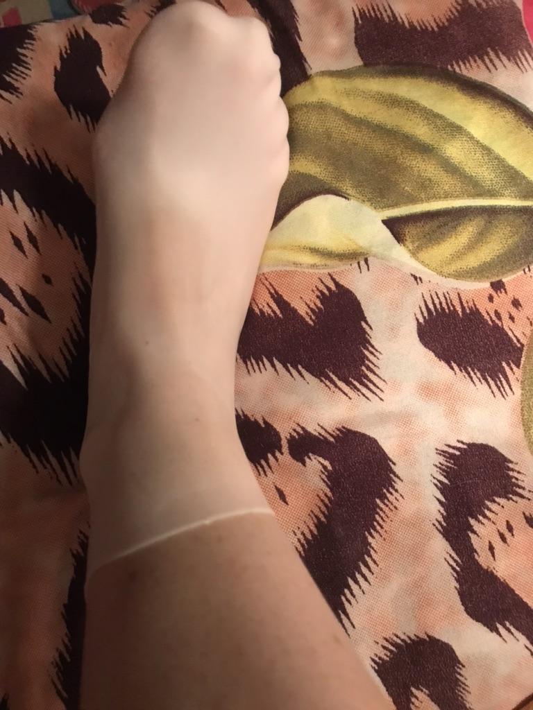 Один носок сползает с ноги со стороны пятки, через пять минут использования начало жечь ноги, появился зуд. Крем использовала обычный, которым пользуюсь уже полгода. Носки сняла, через некоторое время неприятные ощущения исчезли. Возможно у меня аллергия на материал. Да и ещё, ходить и стоять в этих носках нельзя, очень скользко Товар не рекомендую