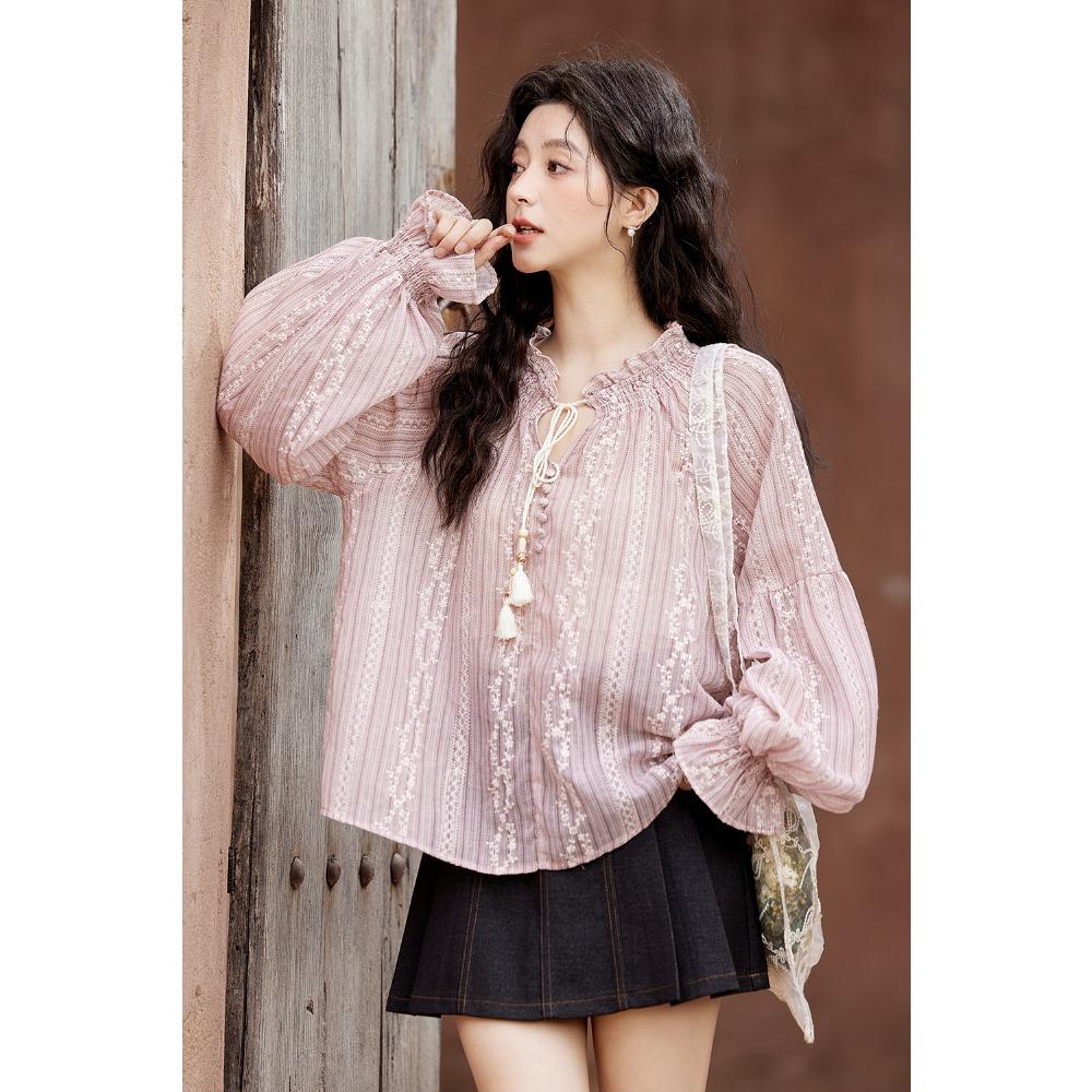 Mishow Модная вышитая блузка с кисточками на бретельках, женская, весна-лето, новая, милая кружевная рубашка с длинными рукавами и буфами MXE11X1704