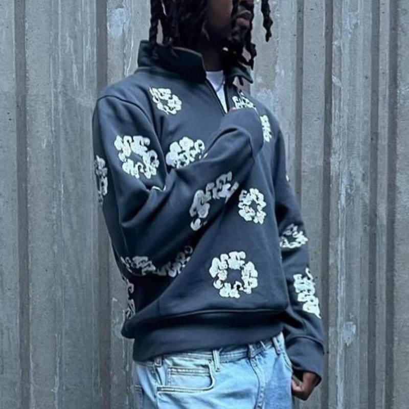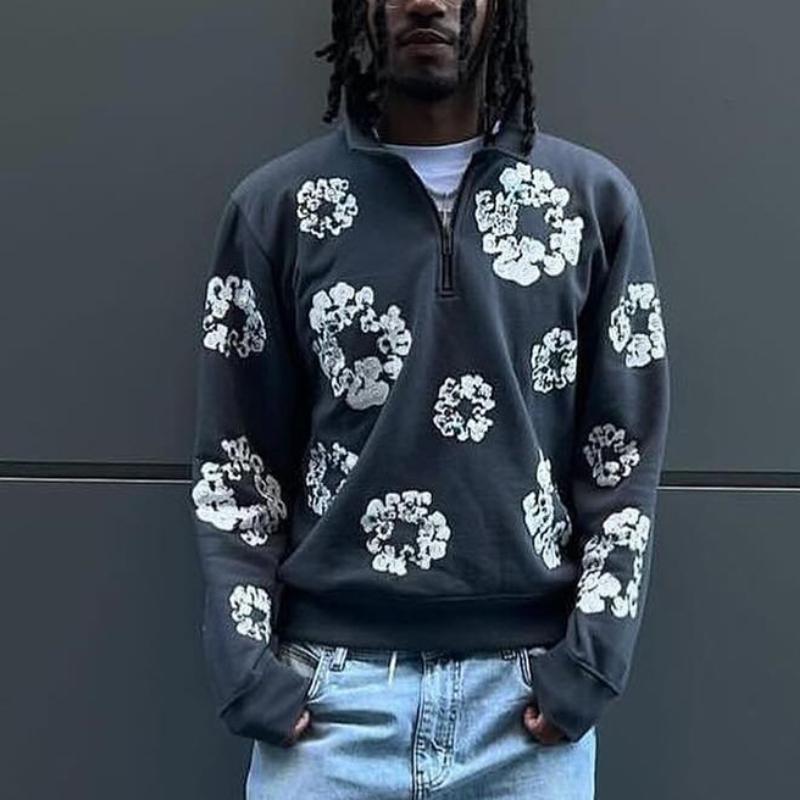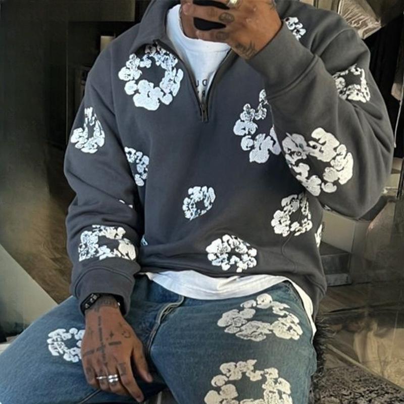 Европейский и американский осенне-зимний цветочный принт свободный уличный хип-хоп мужской и женский свитер с капюшоном