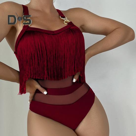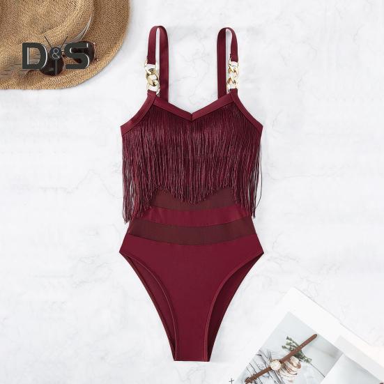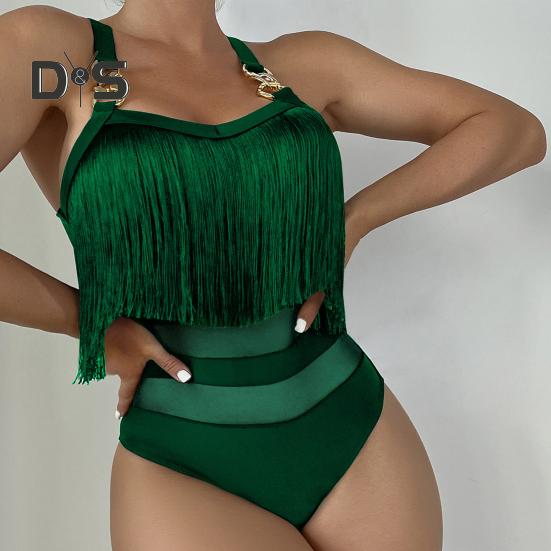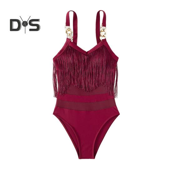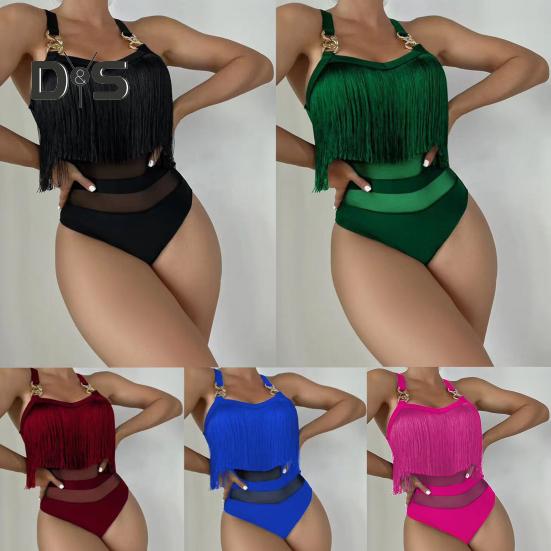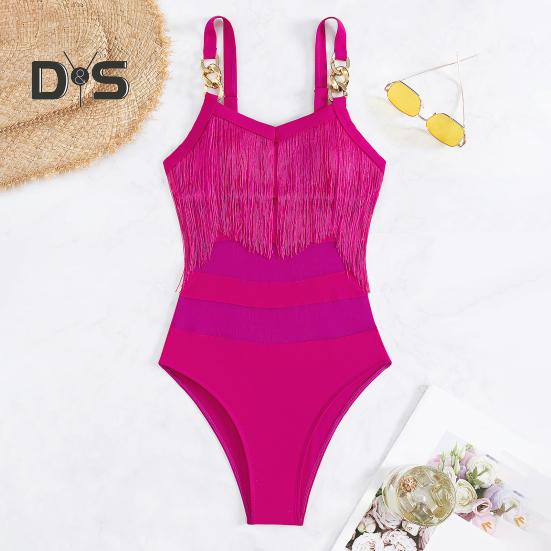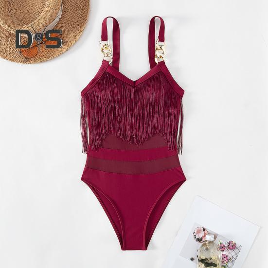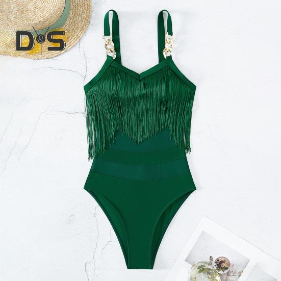 Элегантный дизайн: Этот слитный купальник с регулируемыми подвязками в виде цепочек и кисточкой на груди излучает стиль и очарование, идеально подходя для тех, кто ищет изысканный пляжный образ.