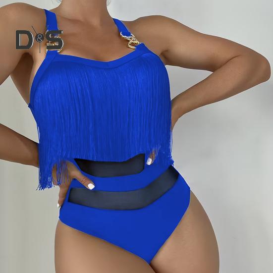 Дополните свой пляжный образ нашим стильным слитным купальником. Этот купальник отличается привлекательным дизайном чашечек со сборками, подкладкой на груди для комфорта и отделкой из полой сетчатой пряжи, которая подчеркивает ваши изгибы.. Регулируемая цепочка-подтяжка добавляет элегантности, а открытая спинка и кисточка на груди спереди создают шикарный и очаровательный образ..