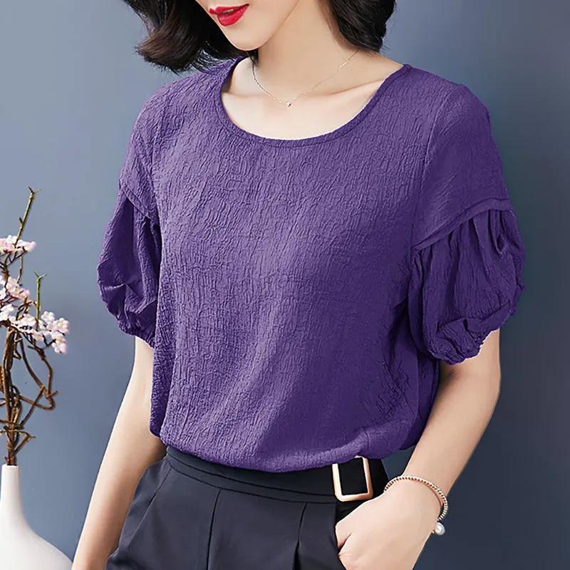 Женская летняя простая повседневная футболка плиссированная свободная темпераментная элегантная майка