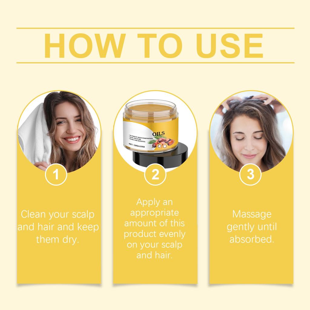 Пищевая формула: Наше масло для роста волос содержит жирные, удерживающие влагу растительные стерины и каротиноиды, способствующие выработке коллагена и эластичности, улучшающие кровообращение кожи головы и обеспечивающие больше питания волосяным фолликулам.