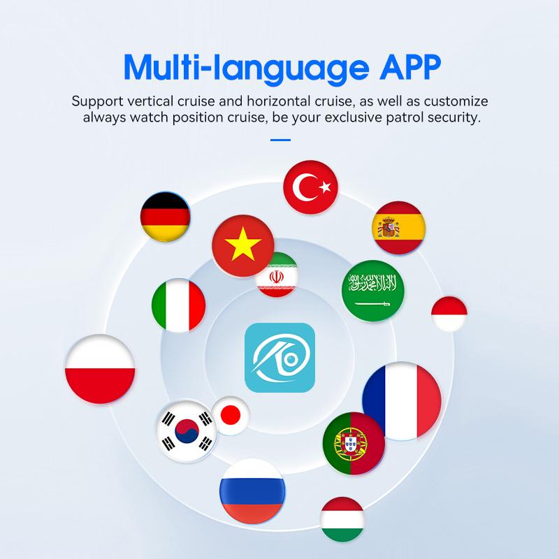 Panoramic view 360° dual PTZ: dual-motor PTZ design, 355° horizontal rotation, 90° vertical rotation, the camera can be controlled to rotate up, down, left and right at any time through the APP