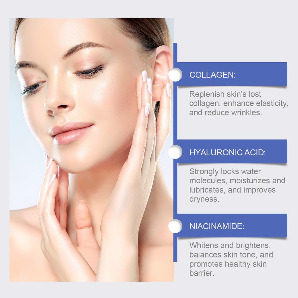 Содержит коллагеновые ингредиенты, заполняет мелкие морщины и подтягивает текстуру кожи.