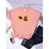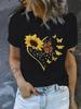 Простые женские футболки с принтом подсолнухов, бабочек, сердец, с коротким рукавом, удобные мягкие топы с круглым вырезом, летняя повседневная женская одежда