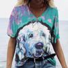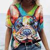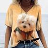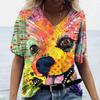 Новые летние женские топы с v-образным вырезом, футболки с короткими рукавами и 3D милым принтом собаки, повседневные милые Harajuku, универсальная одежда Y2K, европейский размер