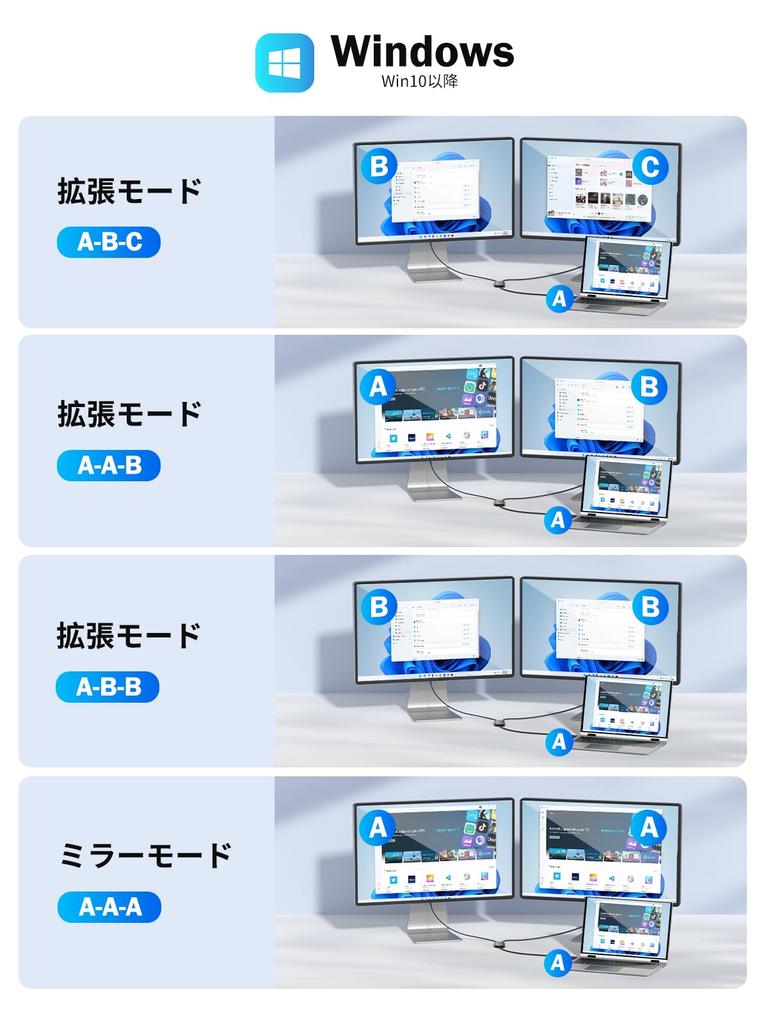 **При первом использовании подключитесь к порту HDMI на передней правой стороне, где расположен логотип Lemorele, и загрузите драйвер.. [В MAC OS/Windows OS поддерживаются 3 различных экрана] В предыдущих версиях Mac OS дублировать один и тот же экран можно было только в расширенном режиме, но не было функции вывода трех различных экранов.. Однако с этим двойным адаптером-преобразователем HDMI (модель: HD10) оснащен инновационной технологией, позволяющей выводить изображение на три разных экрана независимо даже в расширенном режиме Mac OS. MacOS поддерживает режимы AAA и ABC. Windows поддерживает режимы AAA, AAB, ABB, ABC 4. Поддерживает только разрешения до 1920x1080@60Гц для Windows 11, Windows 10, Mac OS 10.15 и более поздних версий.. уведомление: ① Требуется установка драйвера "Udisplay". ②ChromeOS, Android, iOS, Linux и Unix не поддерживаются.