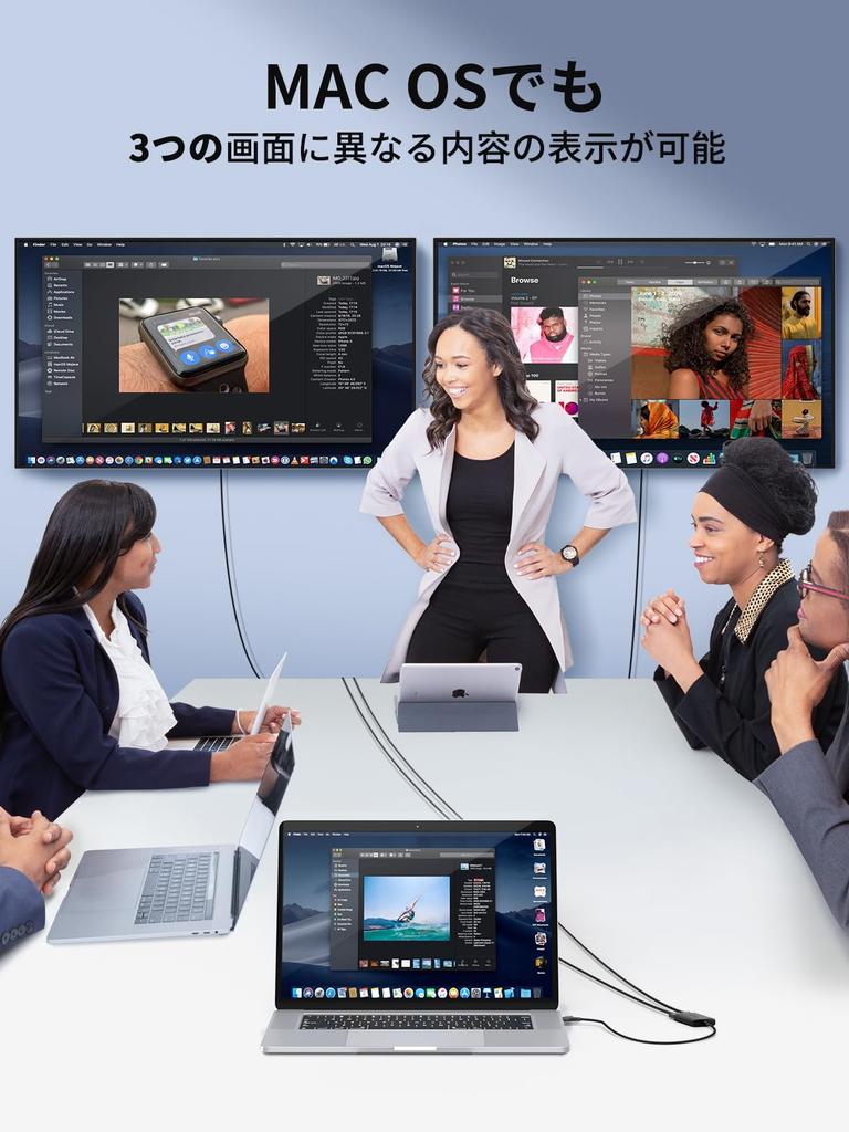 【Трансформируемый порт USB A/Type-C 2-в-1】Простое подключение к устройствам USB-C, USB-A, Thunderbolt 3/4 и зеркальное отображение или расширение содержимого экрана для значительного повышения эффективности работы.. Зеркальный режим: AAA (те же 3 экрана). Расширенные режимы: 1) ААБ, 2) АББ, 3) CBA (A, B, C — три разных экрана дисплея). MacOS поддерживает не только традиционный режим ABB, но и режим ABC.. Данный адаптер оснащен различными системами защиты от перегрузки по току, перенапряжения, короткого замыкания и выделения тепла, что может повысить производительность работы.