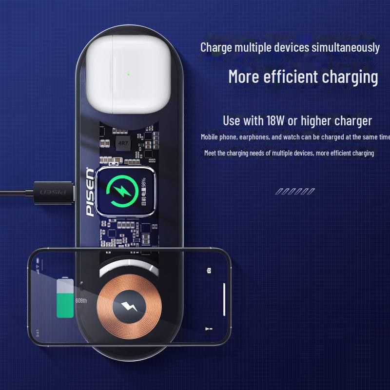 PISEN Беспроводное зарядное устройство 3-в-1 прозрачное для Apple, iWatch и Huawei