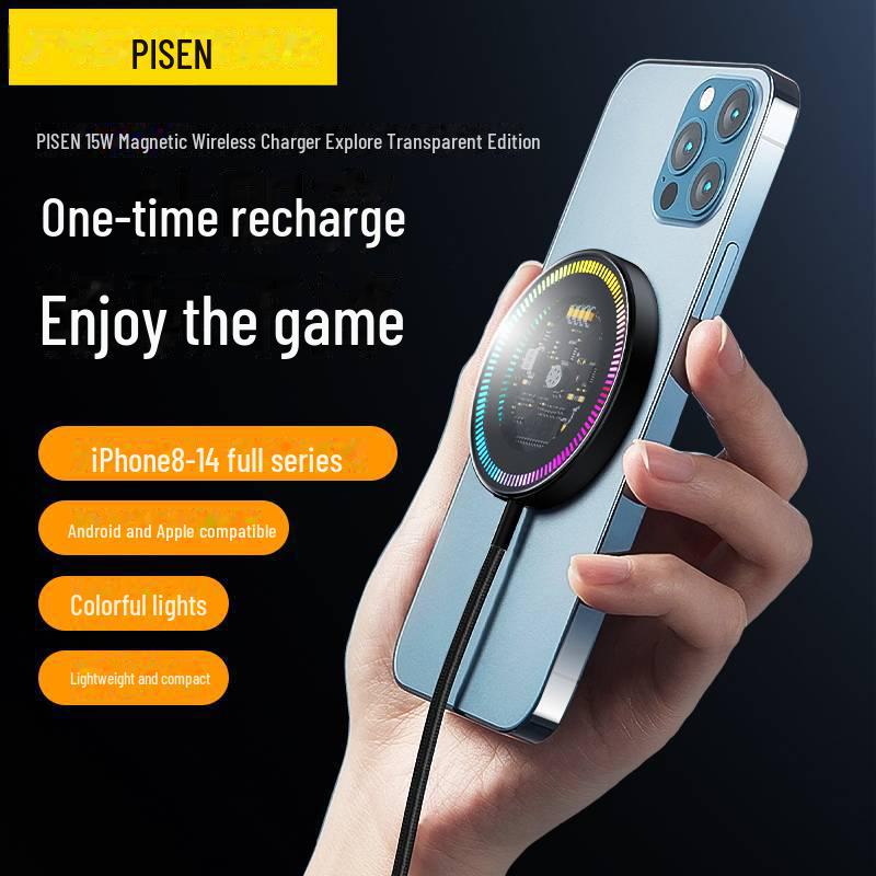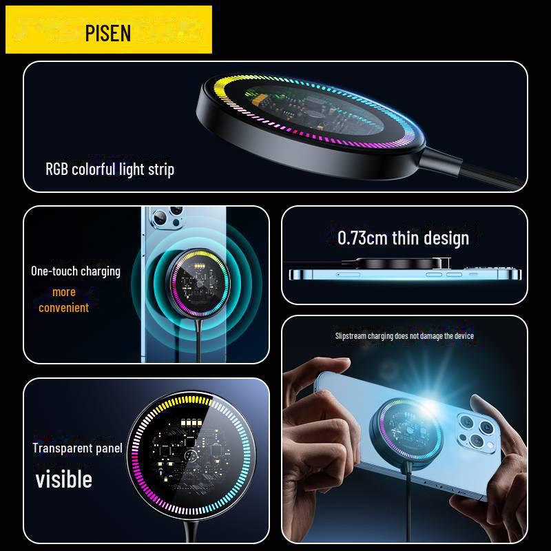 Магнитное беспроводное зарядное устройство PISEN, совместимое с MagSafe, с подсветкой для Apple и Android