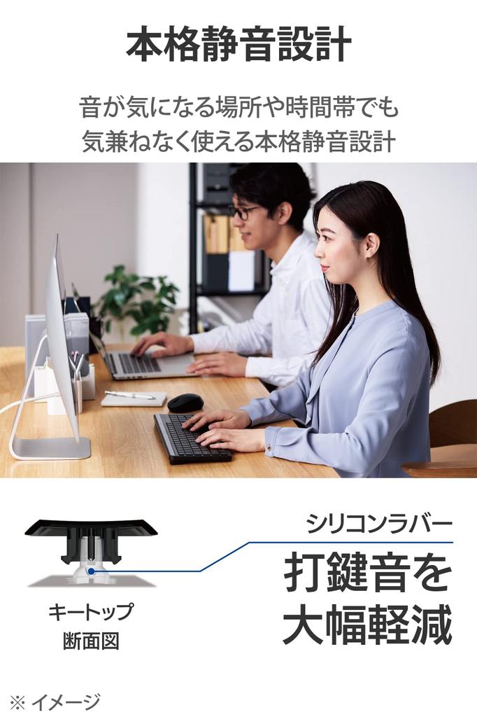 Силиконовая резина, прикрепленная к верхней части каждой клавиши, снижает шум нажатия клавиш более чем на 90% по сравнению с обычными изделиями.. Идеально подходит для использования в общественных помещениях, конференц-залах и других местах и в то время, когда шум может быть опасен, например, поздно ночью или рано утром.