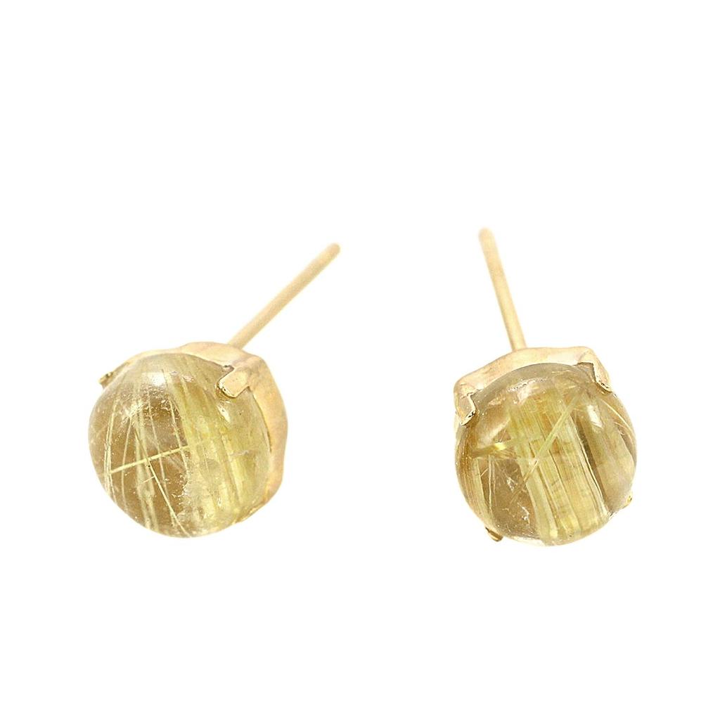 Серьги из рутилового кварца из 18-каратного желтого золота с одним круглым шариком для обоих ушей [Barzaz] женские — купить товар онлайн с бесплатной доставкой по всему миру!