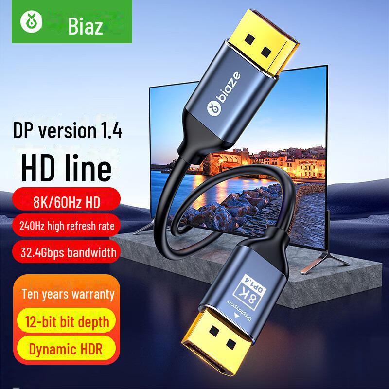 Кабель Biaz Pure Copper DP 1.4: Видеокабель высокой четкости 4K@144 Гц, 2K@165 Гц, 8K «папа-папа»