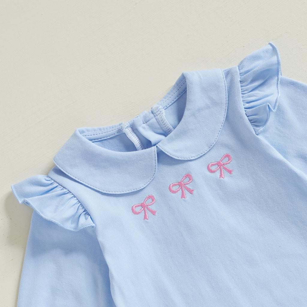 Комбинезон для девочек на весну и осень с длинными рукавами и вышитым бантом