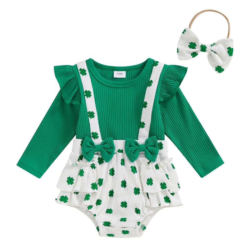 Комплект из 2 предметов для девочек, весенние наряды, комбинезон с длинными рукавами, бантом спереди и повязкой на голову, одежда для новорожденных