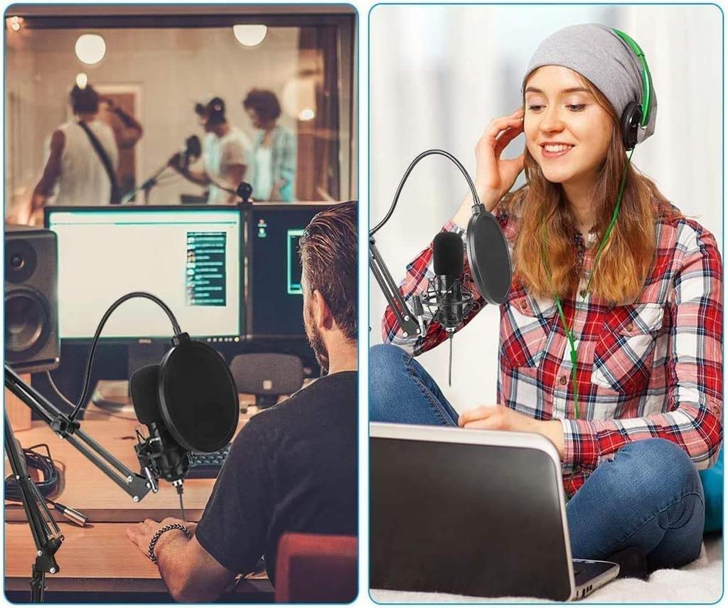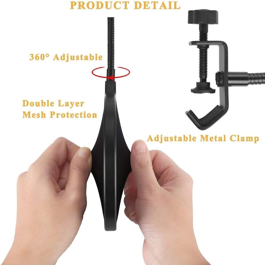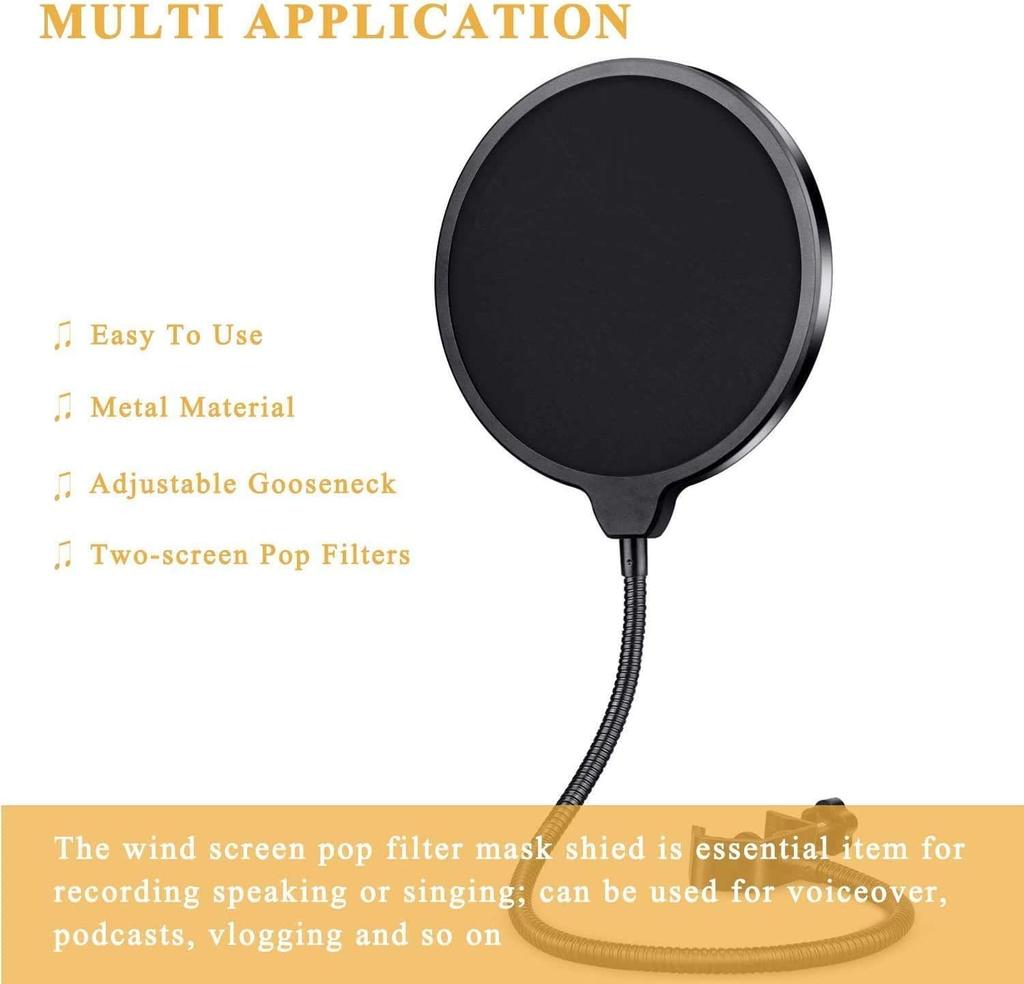 Поп-фильтр, конденсаторный микрофон, микрофонная стойка, поп-фильтр, микрофонный фильтр, микрофонный фильтр, защитный кожух для микрофона, вокальный поп-фильтр, ветрозащитный экран с двойными стенками, диаметр сетки для предотвращения шума 15,5 см, поп-фильтр для настольного микрофона, прямая трансляция. Идеально подходит для предотвращения шума при записи аудиокомментариев к играм на YouTube, домашней записи, публикации видео, выступлений, предотвращения шума при записи.